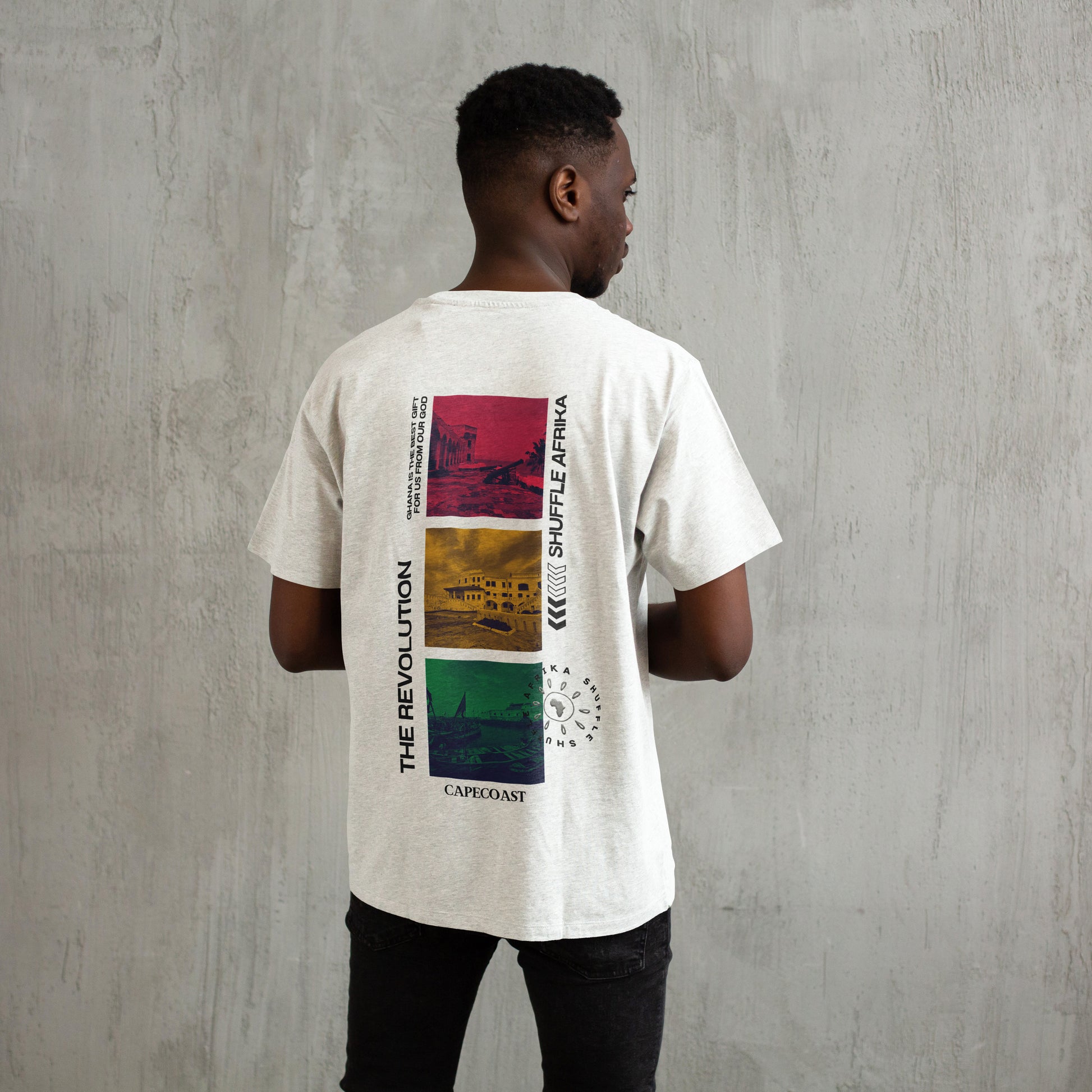 Cape Coast Revolution Wear a piece of Ghana's storied coastal heritage with this evocative shirt showcasing the iconic landscapes and historical significance of Cape Coast. Featuring carefully curated imagery of this pivotal port city, the design honors its role as a gateway to Ghana's rich past and vibrant present. The garment captures the essence of coastal beauty, cultural depth, and historical resonance that defines this UNESCO World Heritage site. Perfect for travelers, history scholars, and those with deep connections to Ghana's maritime legacy. A sophisticated choice for celebrating one of West Africa's most culturally significant destinations.