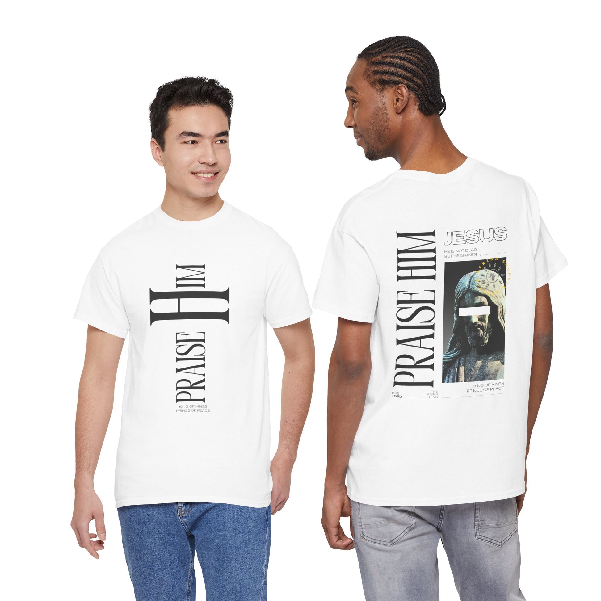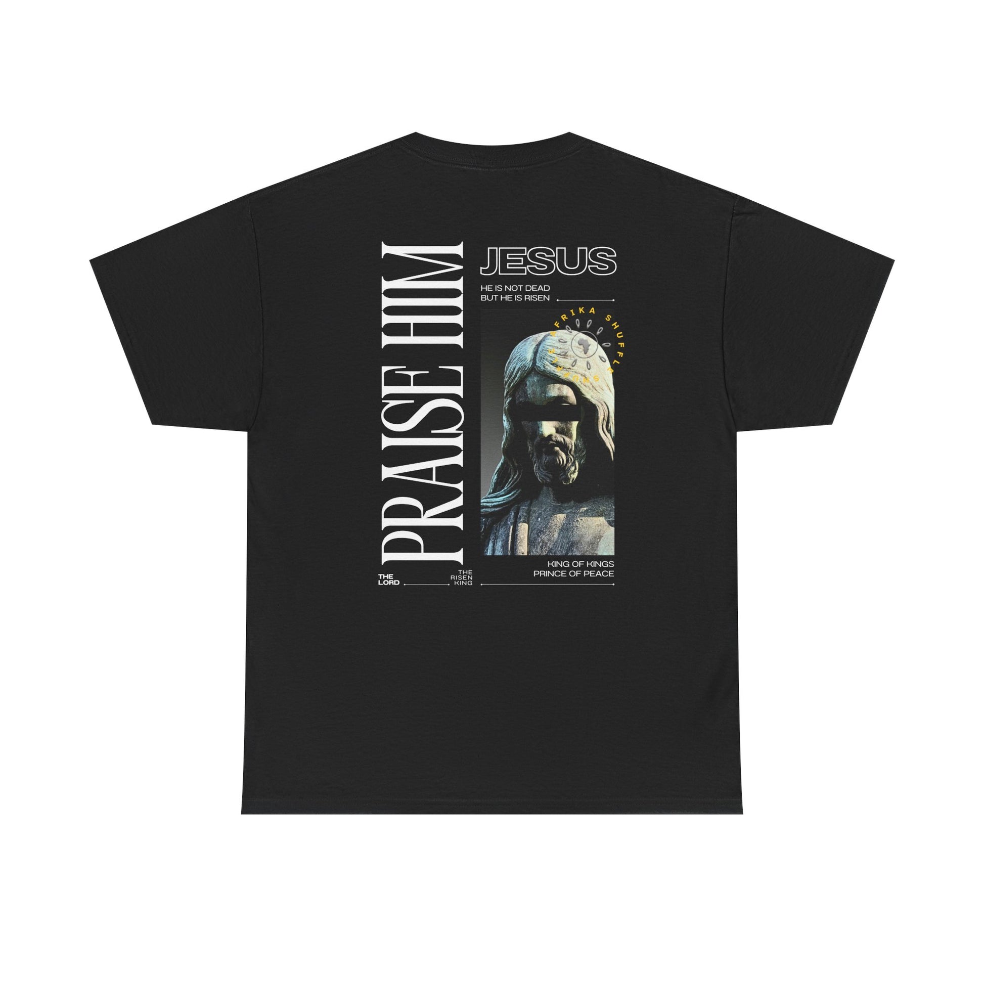 Praise Him Graphic Tee Express your faith with this striking graphic tee featuring a bold "Praise Him" inscription. Crafted from premium cotton blend fabric, this shirt delivers comfort and durability for everyday wear. The eye-catching design makes a powerful spiritual statement while maintaining a contemporary aesthetic. Perfect for church gatherings, casual outings, or as a meaningful gift for believers. Available in multiple sizes, this tee combines quality construction with purposeful messaging that resonates with your values.